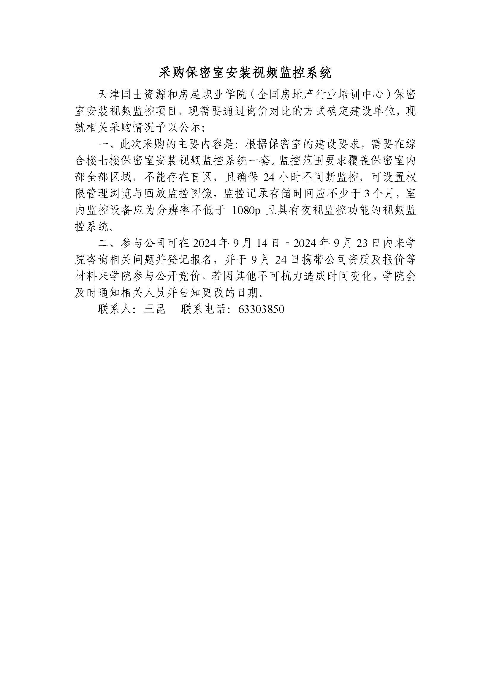 采购保密室安装视频监控系统