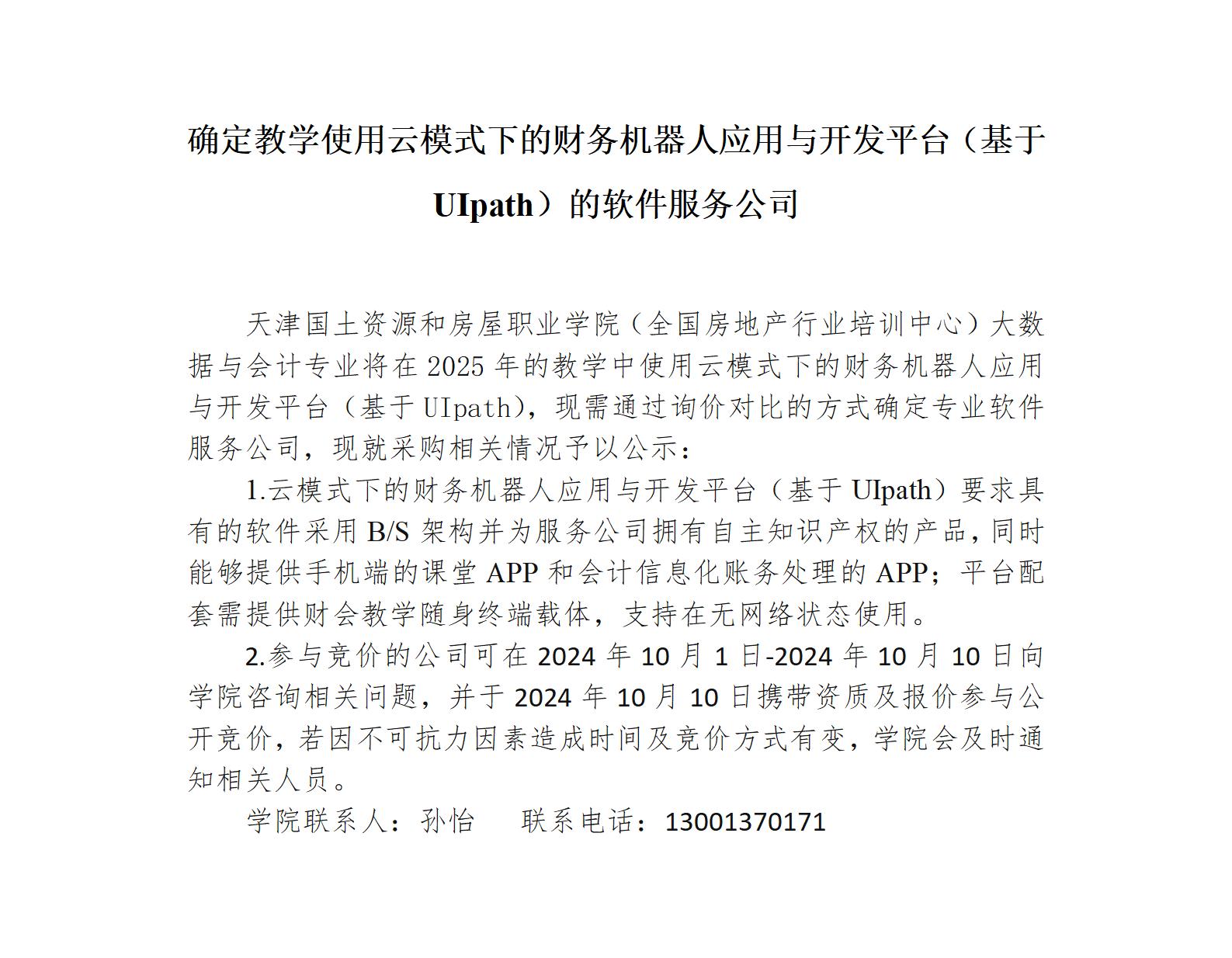确定教学使用云模式下的财务机器人应用与开发平台(基于UIpath)的软件服务公司