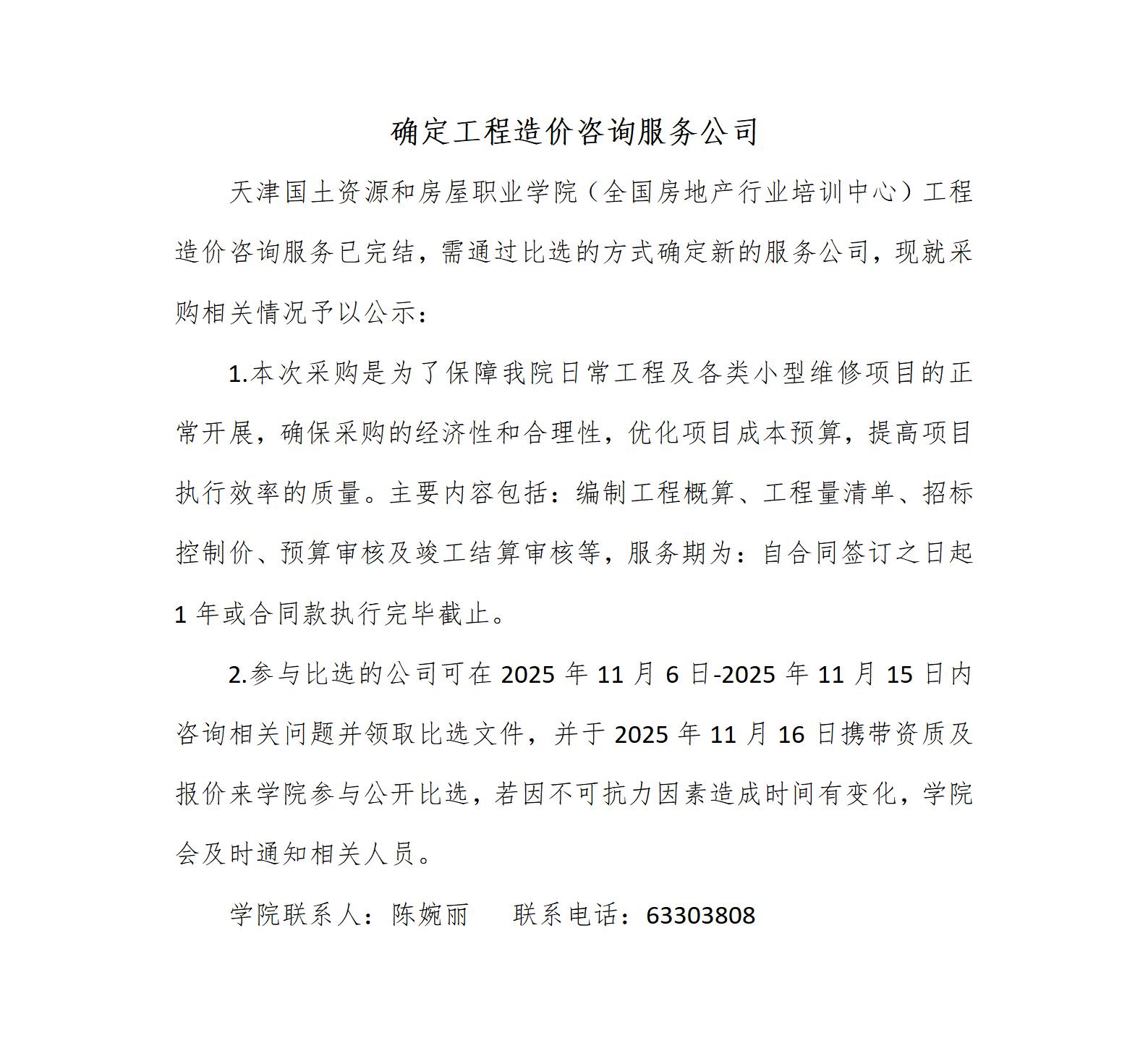 确定工程造价咨询服务公司