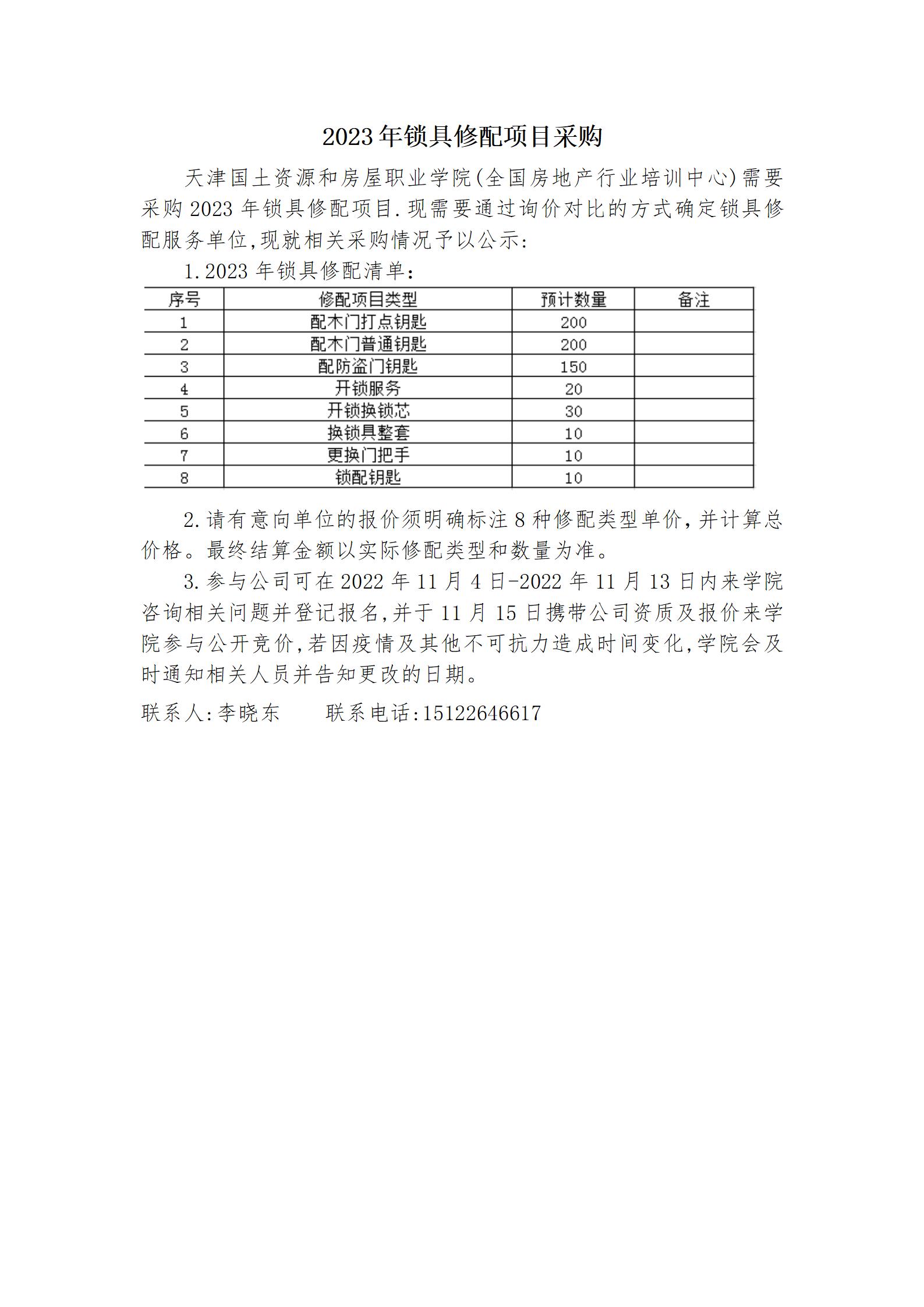 2023年锁具修配项目采购