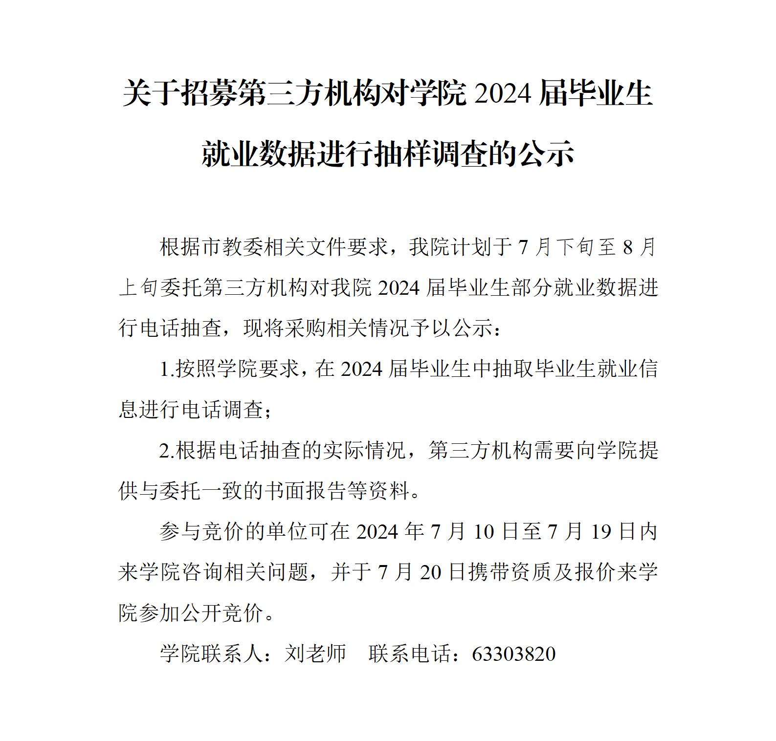 关于招募第三方机构对学院2024届毕业生就业数据进行抽样调查的公示