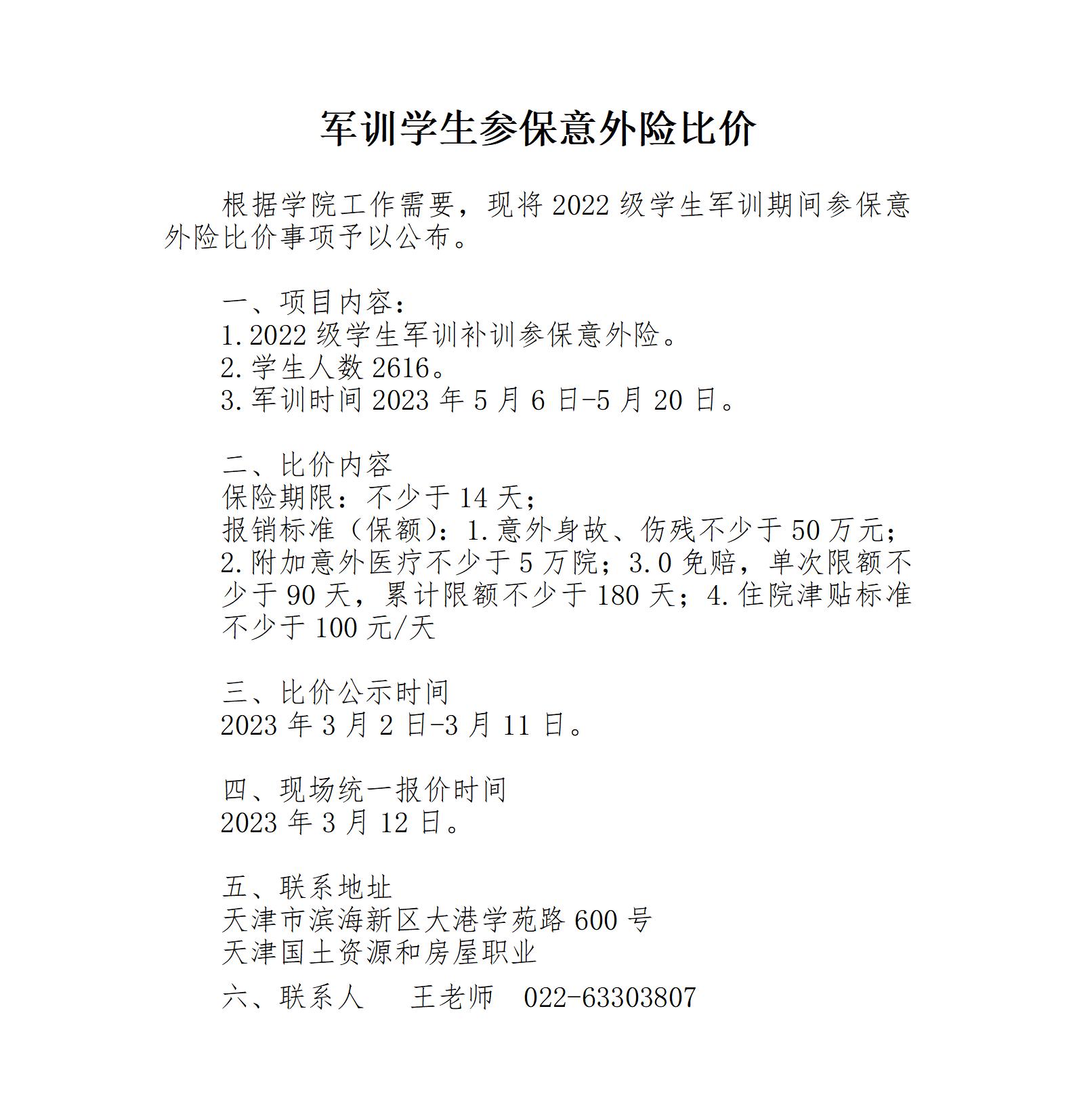 军训学生参保意外险比价