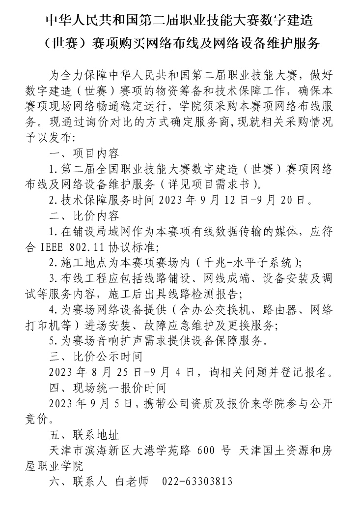 中华人民共和国第二届职业技能大赛数字建造(世赛)赛项购买网络布线及网络设备维护服务