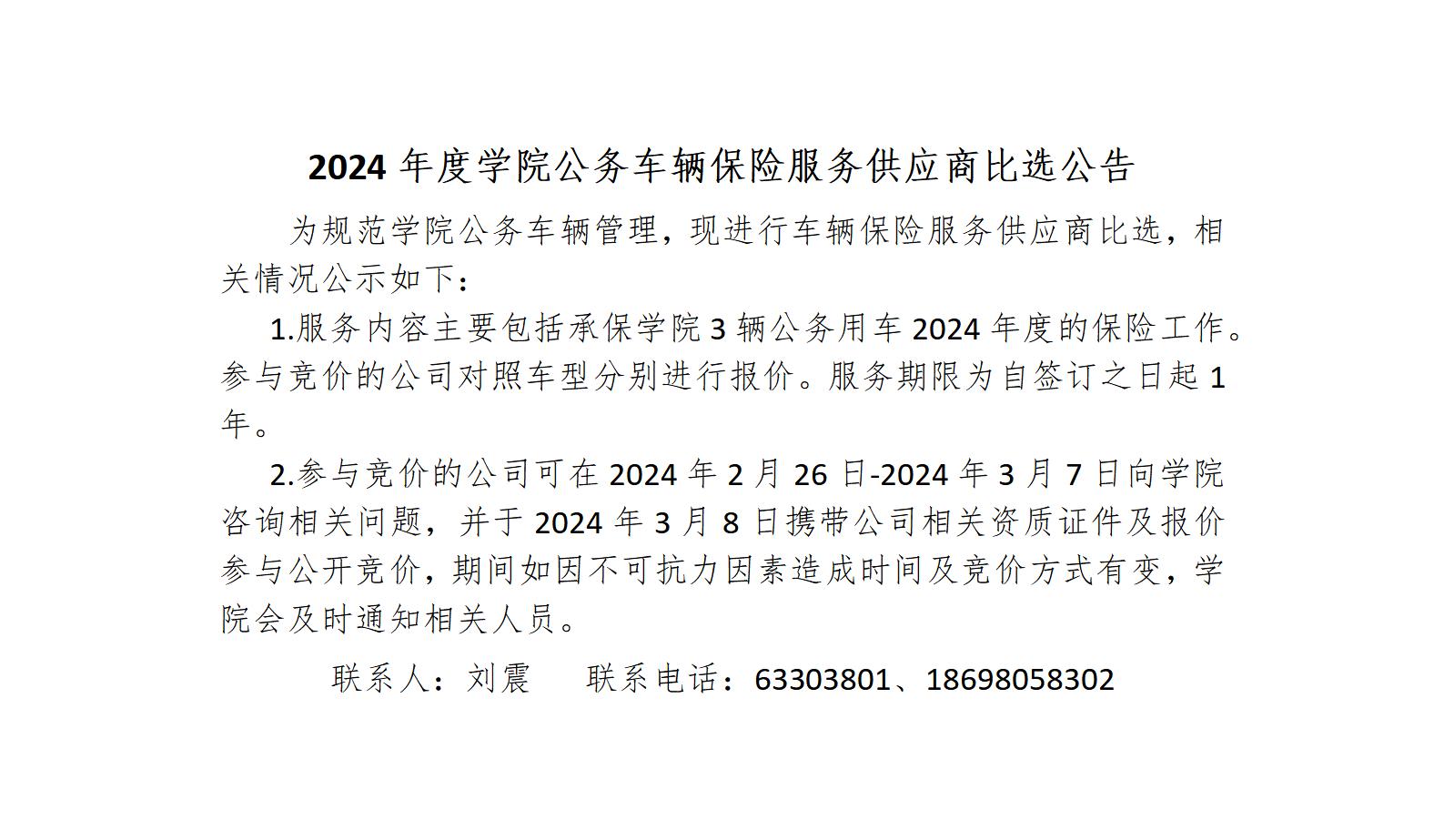 2024年度学院公务车辆保险服务供应商比选公告