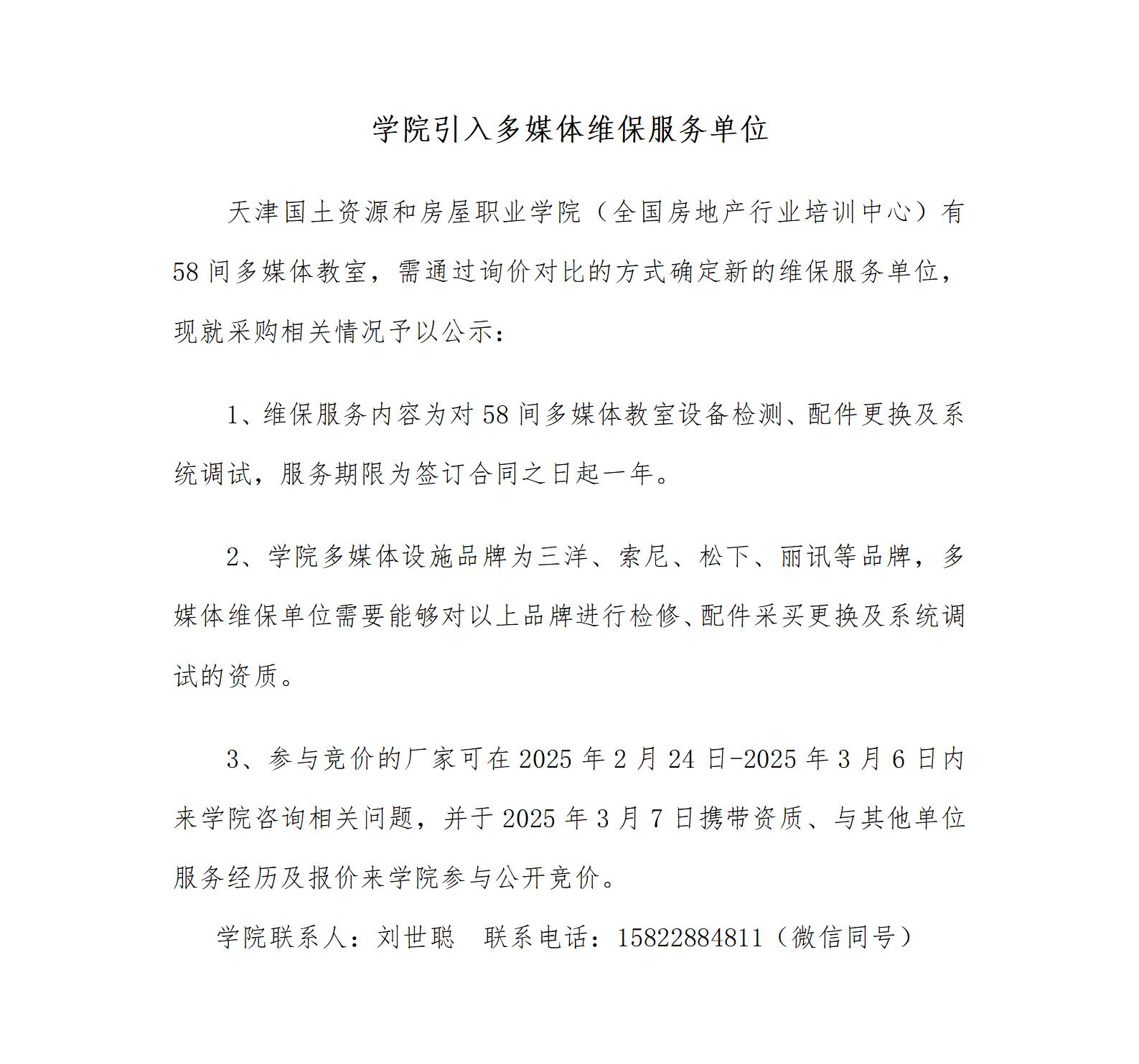 学院引入多媒体维保服务单位