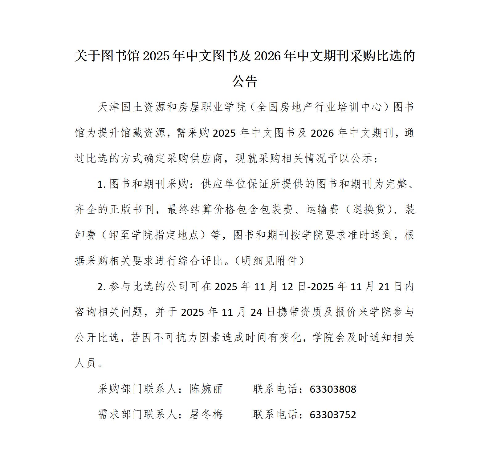 关于图书馆2025年中文图书及2026年中文期刊采购比选的公告