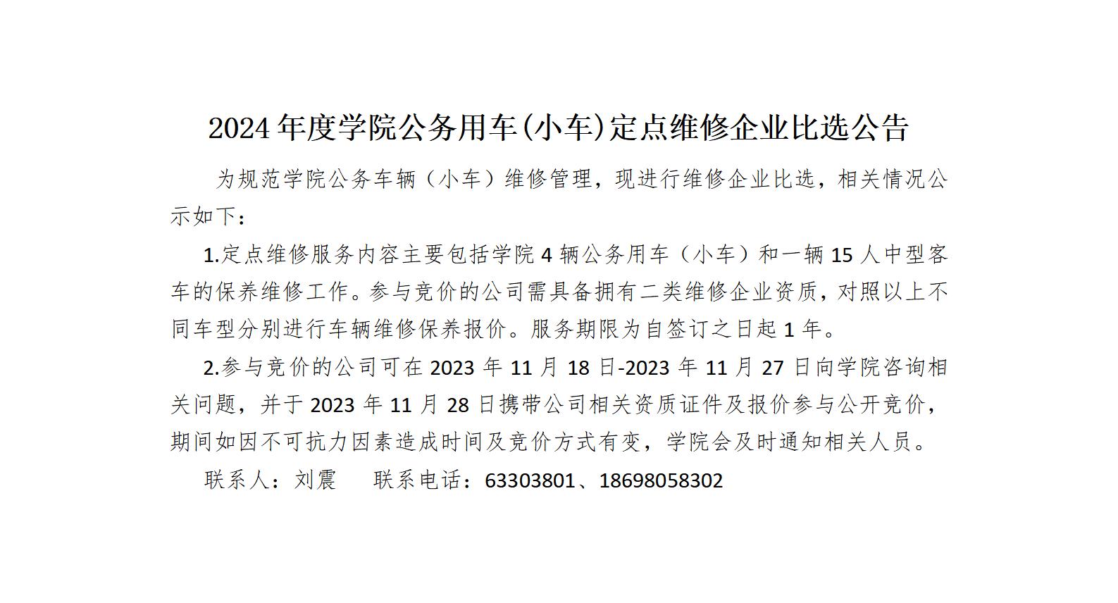 2024年度学院公务用车(小车)定点维修企业比选公告