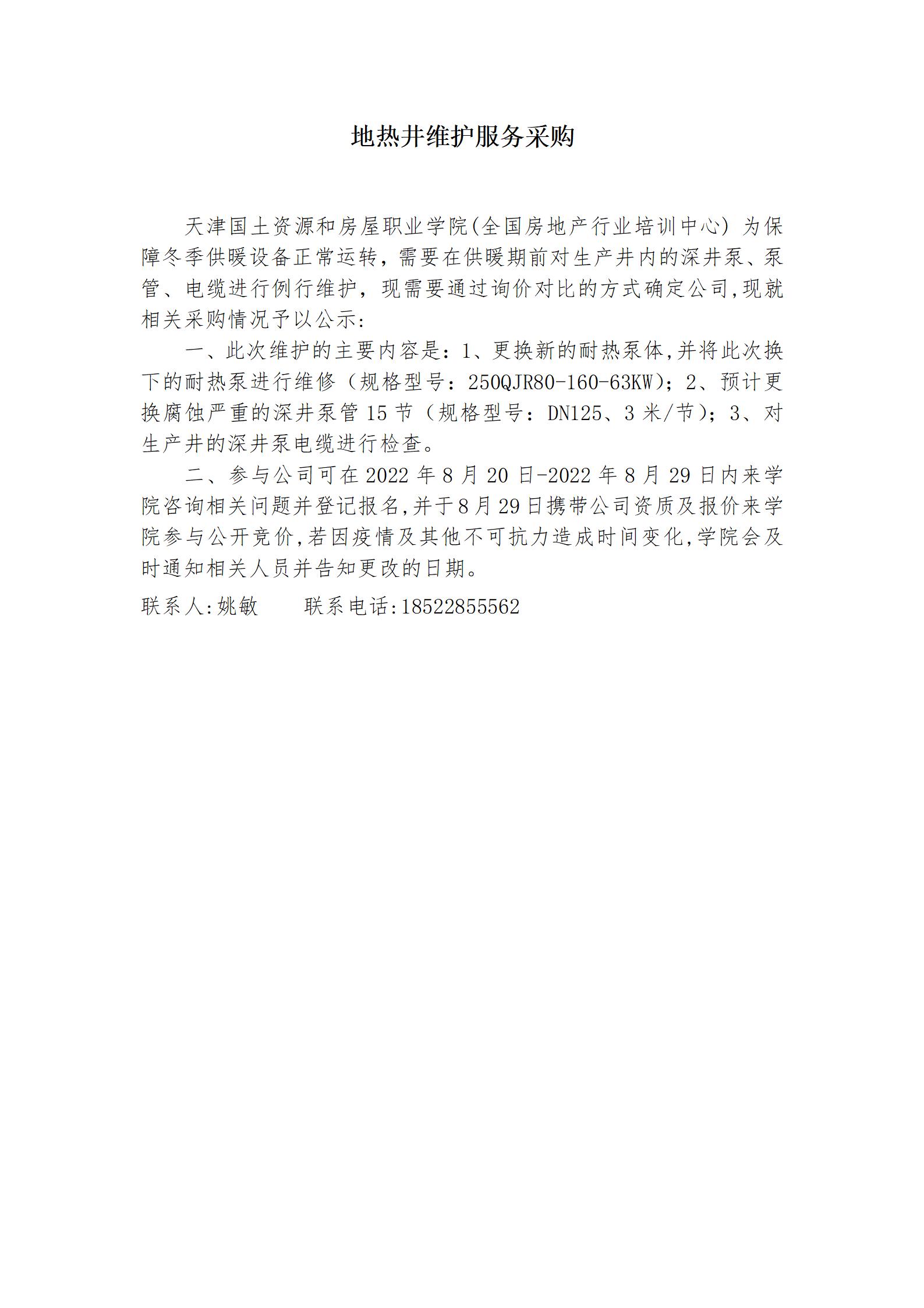 地热井维护服务采购