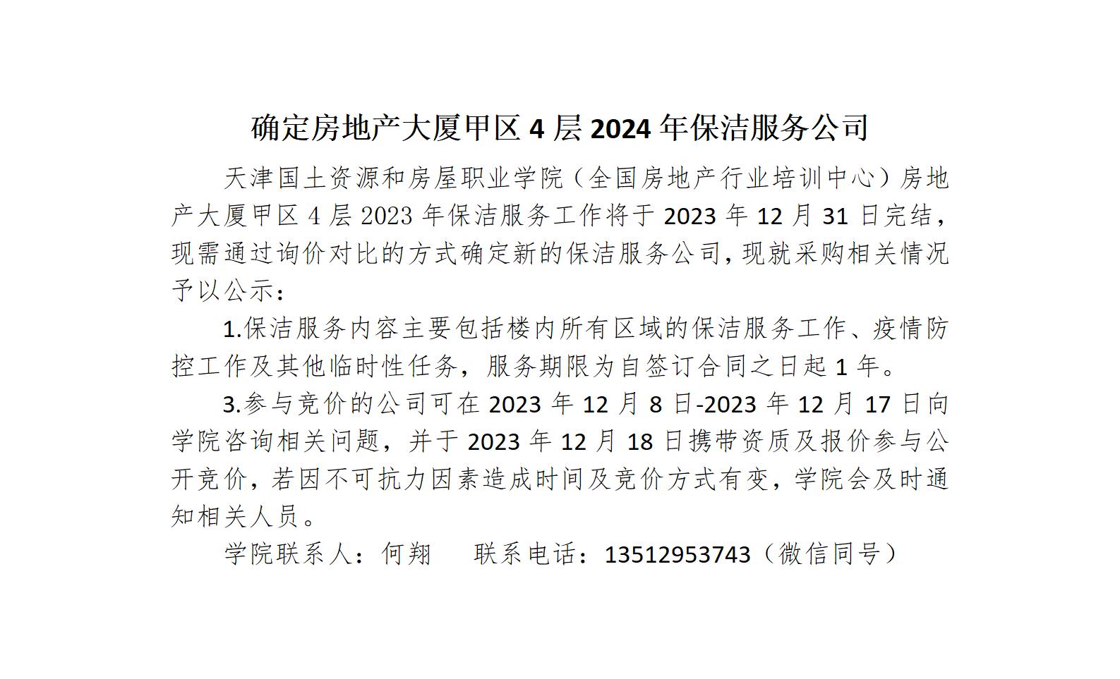 确定房地产大厦甲区4层2024年保洁服务公司
