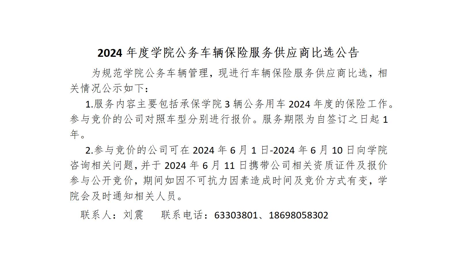 2024年度学院公务车辆保险服务供应商比选公告