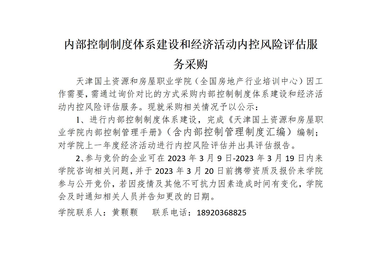 内部控制制度体系建设和经济活动内控风险评估服务采购
