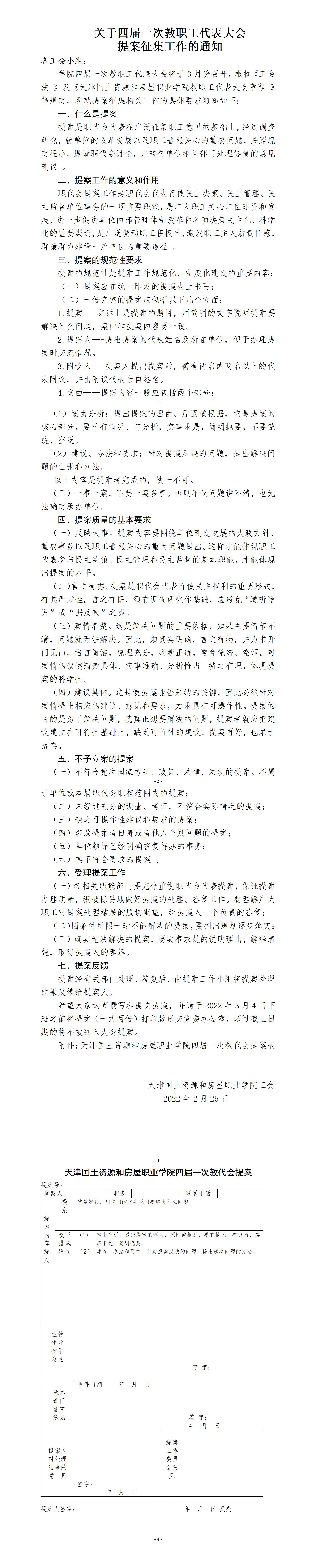 关于四届一次教职工代表大会 提案征集工作的通知
