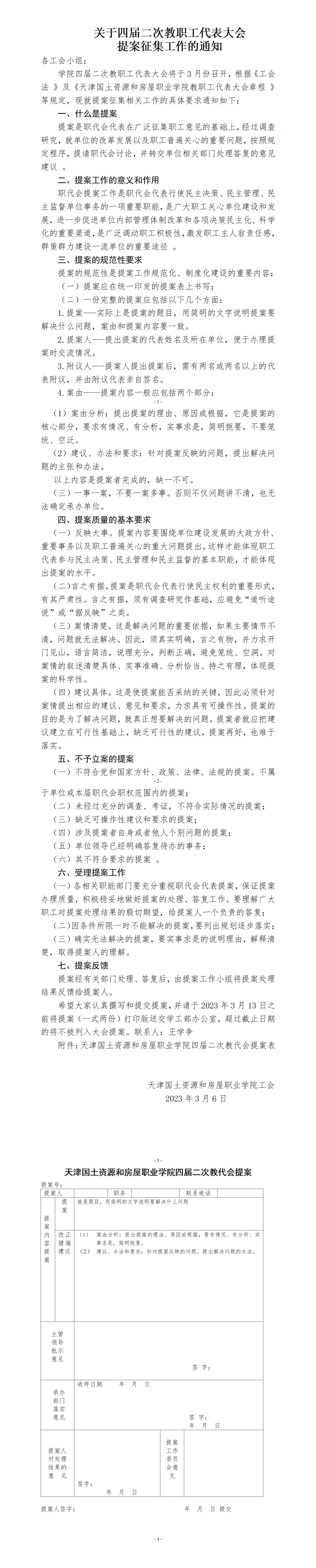 关于四届二次教代会提案征集通知