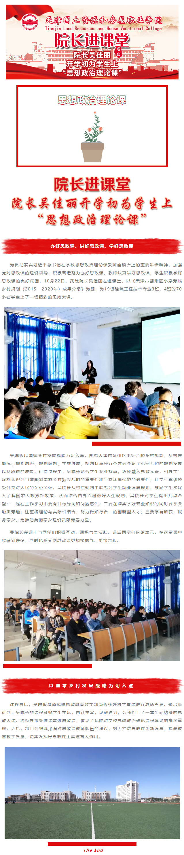 院长吴佳丽开学初为学生上“思想政治理论课”