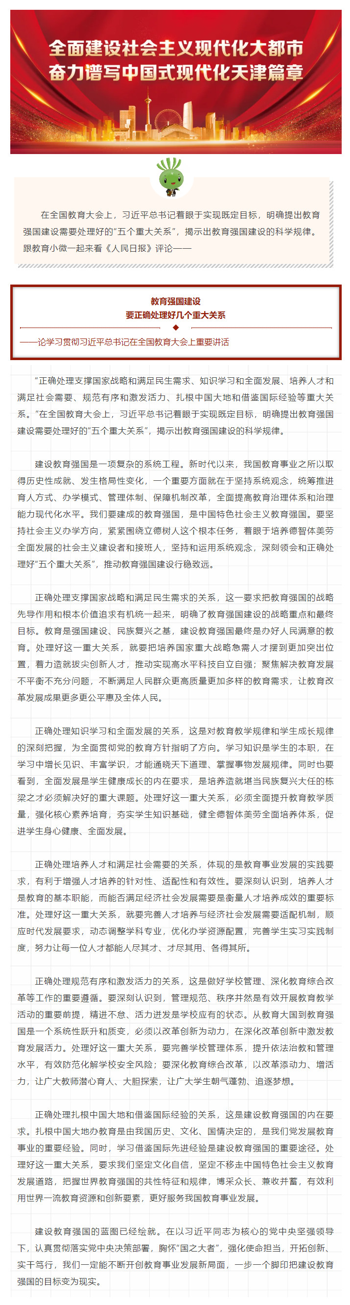 《人民日报》评论:教育强国建设要正确处理好几个重大关系
