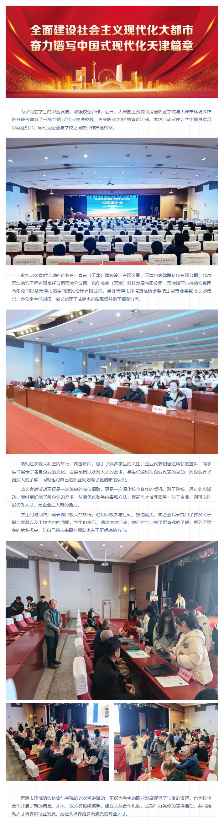 企业进校园,点亮职教之路——天津国土资源和房屋职业学院携手天津市环境装饰协会共启职教之路