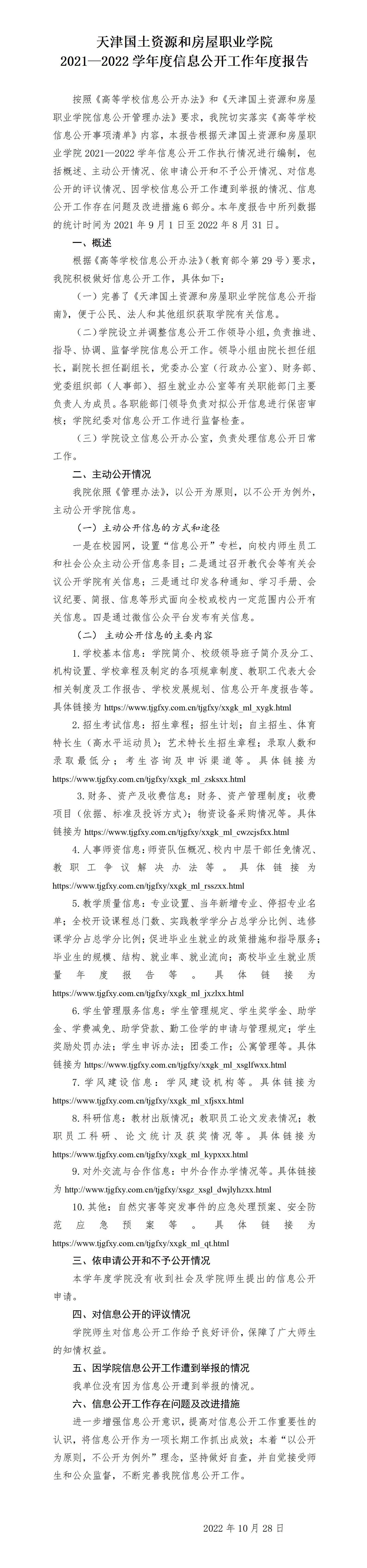 天津国土资源和房屋职业学院2021-2022信息公开年度报告(1201版)