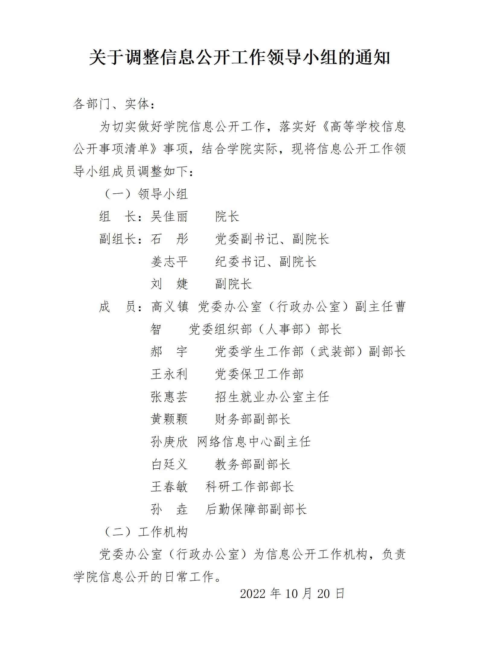 关于调整信息公开工作领导小组的通知