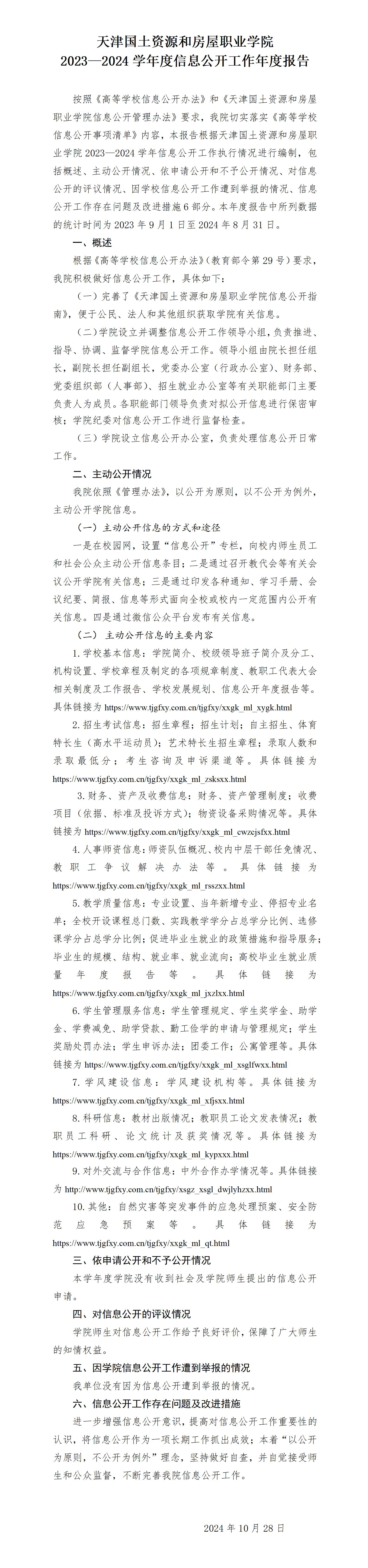 天津国土资源和房屋职业学院 2023—2024学年度信息公开工作年度报告