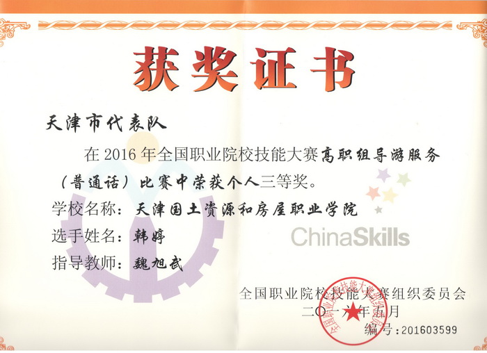 此次比赛,设有普通话导游服务和英语导游服务两个赛项,分自选导游讲解、抽选项目讲解、现场知识问答、导游职业能力测试、才艺展示五个项目进行比赛。在院系领导的高度重视下和专业教师魏旭武、张红的精心辅导及刘露倩、刘超老师的大力支持下,韩婷同学最终荣获大赛普通话组个人三等奖,彰显了个人风采,为学院赢得了荣誉。(撰稿人:国贸系魏旭武)编辑:刘珈伊 审核:刘伟杰