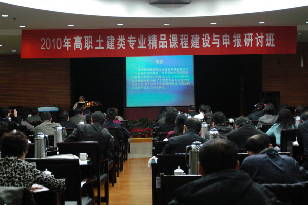 3月6日,2010年高职土建类专业精品课程建设与申报研讨班在会议中心召开。会议由中国建设教育协会高等职业与成人教育专业委员会、高职高专教育土建类专业教学指导委员会主办,我院承办,市国土房管局科教处处长杜艳霞应邀出席并讲话,中国建设教育协会高等职业与成人教育专业委员会主任杜国城、常委魏鸿汉,全国各高职院校主管精品课程建设领导、教务处长、建筑工程系主任、专业负责人及精品课程负责人,我院院长王钊等近80人参会。