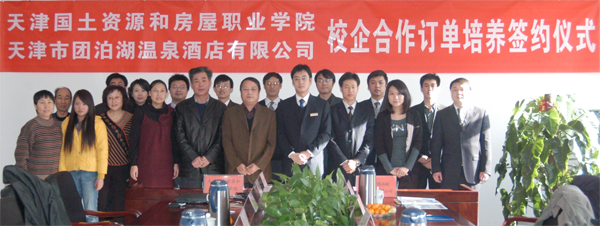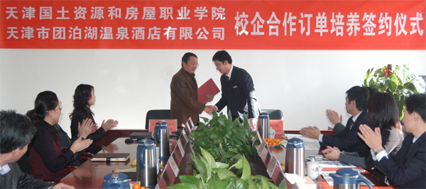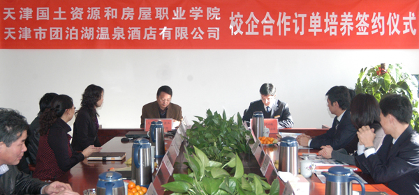 12月15日,我院举行与天津市团泊湖温泉酒店有限公司校企合作订单培养签约仪式。天津市团泊湖温泉酒店有限公司副总经理葛大勇及6位部门经理,学院院长王钊、副院长刘建林、院长助理董玉静、相关部门负责人出席,工商系主任郭凤荣主持,学生代表列席会议。