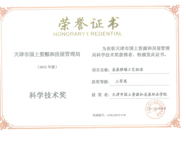 由我院主持完成的“房屋修缮工艺标准”科研项目荣获天津市国土资源和房屋管理局2012年度科学技术三等奖。该项目由学院王钊院长负责,曹智、蒋英、闫振亚共同完成。该项目全面规范了房屋修缮工作流程与质量要求,提供便于规范管理并实施质量控制的有效方法。项目成果将为我市国土房管系统的传统房屋修缮技能有效传承,为行业的可持续性发展提供理论和实践依据。(撰稿人:建工系刘洋)编辑:孙婧 审核:高义镇