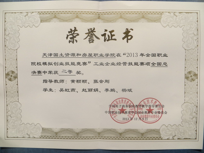 12月8日,由教育部全国电子商务职业教育教学指导委员会和中国职业技术教育学会创业教育专业委员会主办的“2013年全国职业院校模拟创业技能竞赛工业企业经营技能赛项”全国总决赛在大连职业技术学院隆重举行。共有来自全国各地的106支代表队参加了此次竞赛,我院工商管理系派出了由吴虹燕、赵丽娟、李鹏和杨斌4名同学组成的代表队参赛。