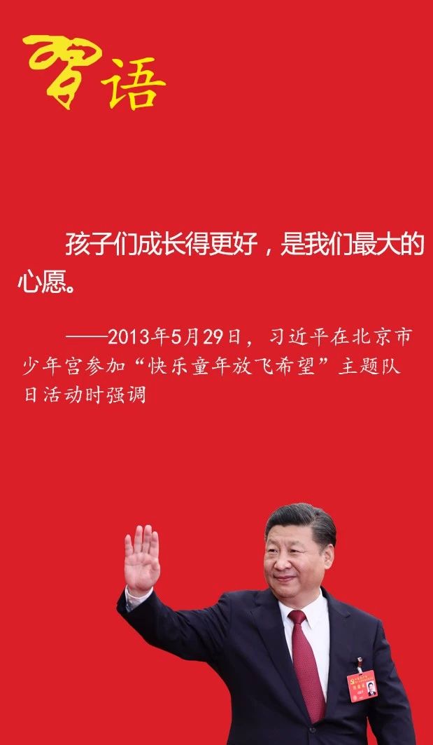 ——2018年5月30日,习近平给陕西照金北梁红军小学学生的回信  2013年5月29日,习近平在北京市少年宫参加“快乐童年放飞希望”主题队日活动。 要做一个好人,就要有品德、有知识、有责任,要坚持品德为先。你们现在都是小树苗,品德的养成需要丰富的营养、肥沃的土壤,这样才能茁壮成长。现在把自己的品德培育得越好,将来人就能做得越好。