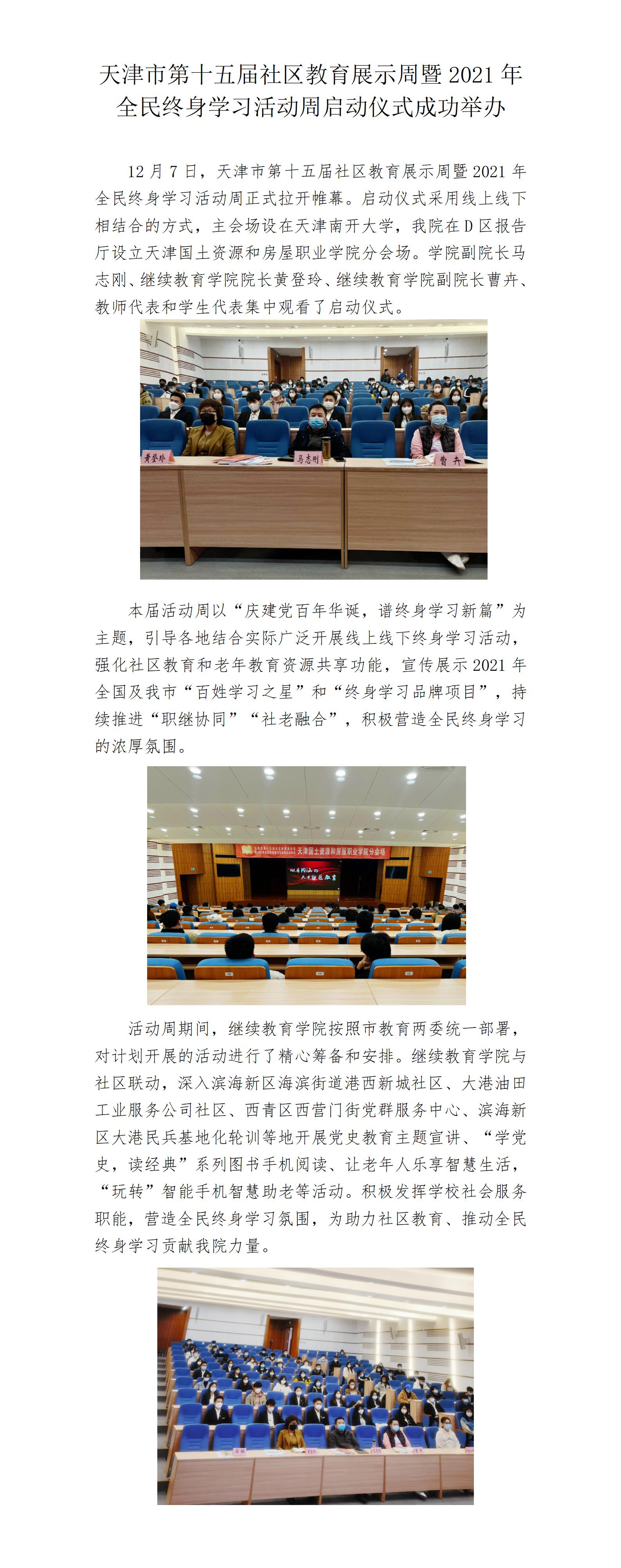 天津市第十五届社区教育展示周暨2021年全民终身学习活动周启动仪式成功举办