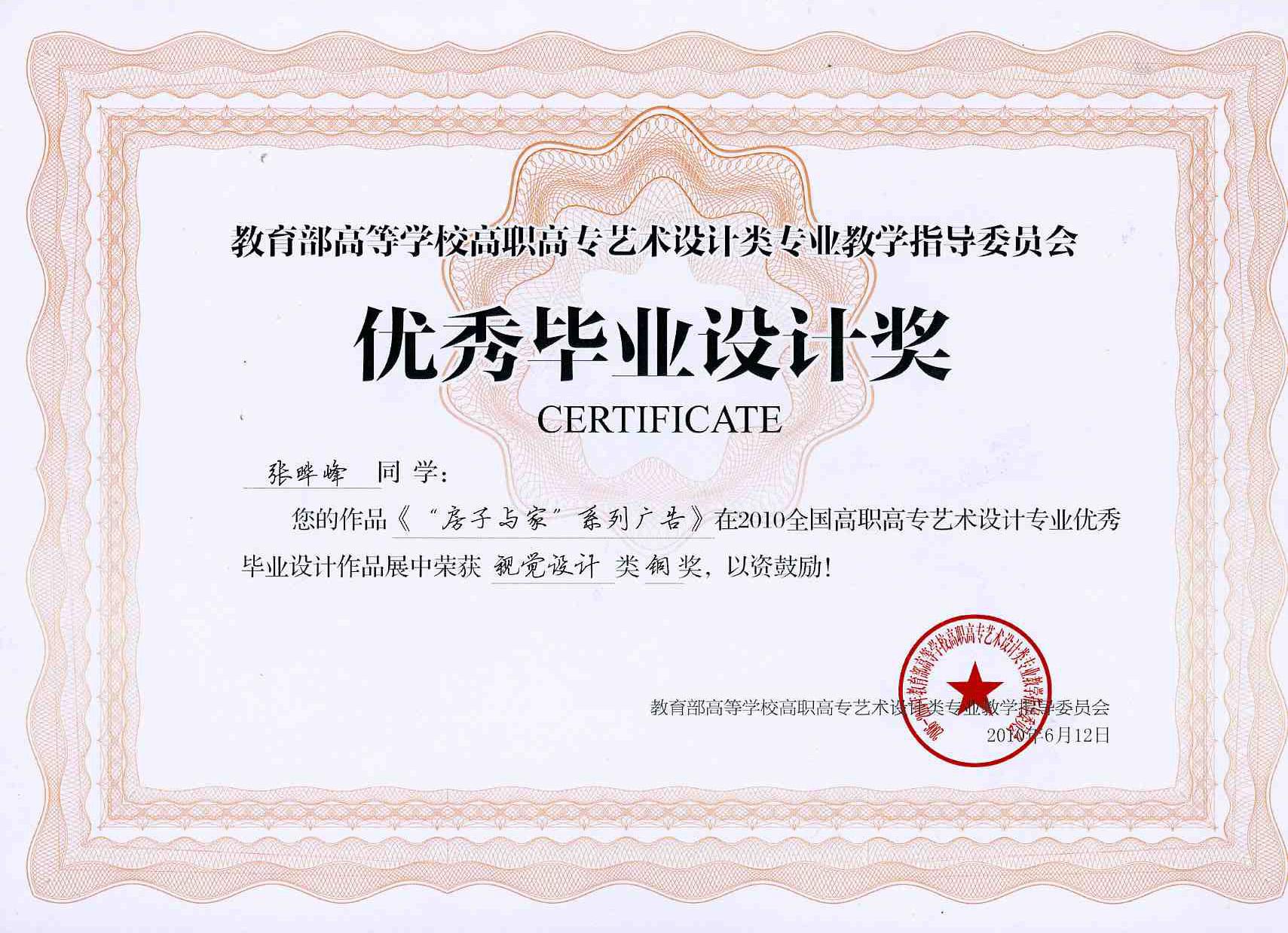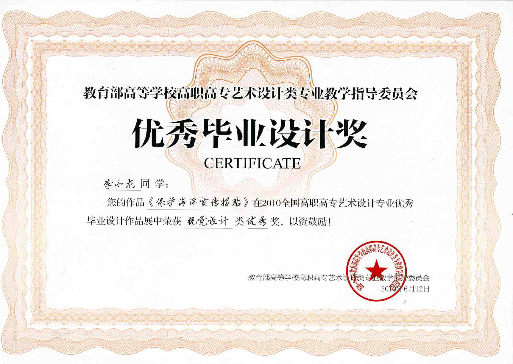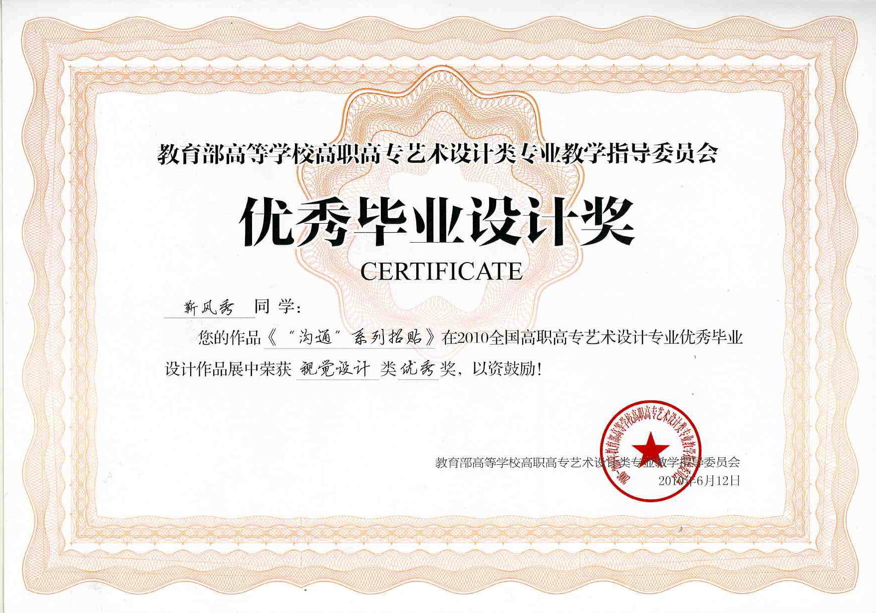 6月10日,艺术系副主任解修波教师指导的2007级张晔峰同学的“房子与家系列广告”作品获第四届全国高职高专院校艺术设计专业优秀毕业设计作品大赛视觉设计类铜奖,靳风秀同学的“沟通系列招贴”和李小龙同学的“保护海洋系列招贴”作品分获同类优秀奖。此次参赛院校和作品数量创历年之最,在如此激烈的竞争下,我院学生获得奖项,展示出我院的教学水平和学生的应用创新能力。