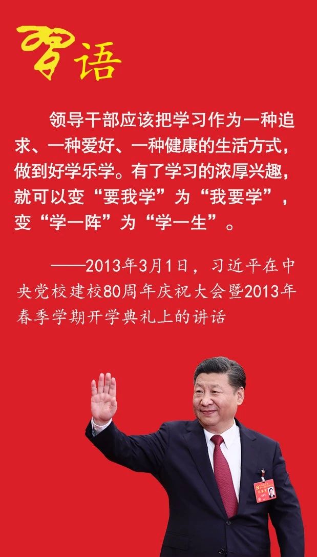 老老实实、原原本本学习马克思主义基本理论 领导干部特别是高级干部要把系统掌握马克思主义基本理论作为看家本领,老老实实、原原本本学习马克思列宁主义、毛泽东思想特别是邓小平理论、“三个代表”重要思想、科学发展观。 ——2013年8月19日,习近平在全国宣传思想工作会议上的讲话 变“学一阵”为“学一生” 领导干部应该把学习作为一种追求、一种爱好、一种健康的生活方式,做到好学乐学。有了学习的浓厚兴趣,就可以变“要我学”为“我要学”,变“学一阵”为“学一生”。 ——2013年3月1日,习近平在中央党校建校80周年庆祝大会暨2013年春季学期开学典礼上的讲话
