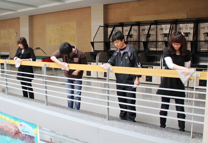 3月19日中午,党委办公室、团委开展了以“美化环境、服务学院、从我做起”为主题的志愿者服务活动,200余名师生参加,全院上下掀起一股热爱劳动、用实际行动奉献学院的热潮。活动以系为单位,由青年志愿者、学生党员、入党积极分子组成,清扫综合楼A区、会议中心、文体馆、连廊、图书馆。各系高度重视,系团总支书记带领广大同学们打扫各自劳动责任区的楼梯间扶手、中厅扶手、地面、玻璃等,共同为美化学院环境贡献力量?;疃诩洌澄旃?、团委检查指导各系服务情况,并将该项活动作为学生党员、入党积极分子的一项考核指标。此次活动,使同学们进一步投入到学院的建设中来,体现了不怕苦、不怕累的精神,为广大学生起到模范带头作用。 (党委办公室、团委)