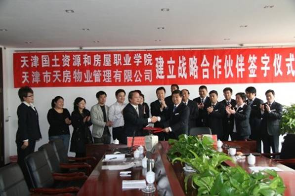4月21日,学院举行与天津市天房物业管理有限公司建立战略合作伙伴关系签字仪式。院长王钊出席会议并代表学院签字。此次协议的签订是在双方长期合作的基础上针对建立实训和培训基地、建立校企合作的人才培养、培训机制、技术支持、继续教育、第三方业主满意度调查等领域进行更深层次的合作。 会上,双方主要领导分别发言进行交流。天房集团总经理张伟杰表示此次能与学院建立战略伙伴关系是天房物业在企业发展强化管理中与高校进行高层次合作的一次尝试,希望与学院紧密合作,充分运用学院科研教学能力,吸纳学院物业管理与物业设施管理专业学生。王钊院长表示职业院校培养模式离不开校企合作,希望双方发挥出各自优势,实现共赢。 (房地产经济管理系)