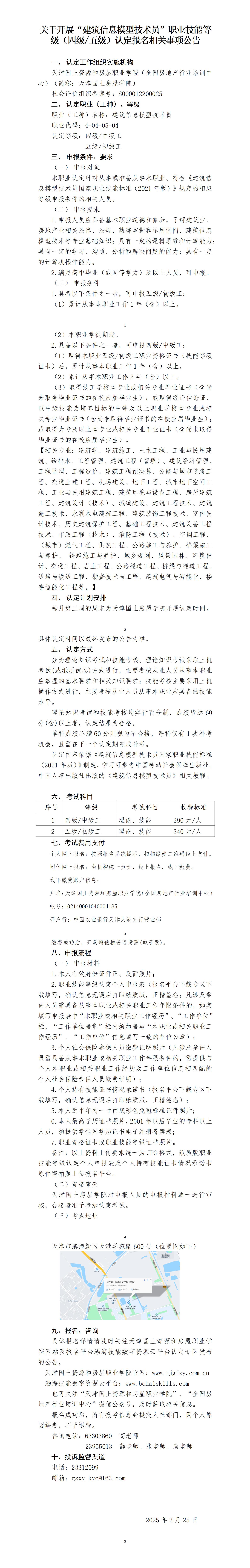 关于开展“建筑信息模型技术员”职业技能等级(四级五级)评价报名相关事项公告