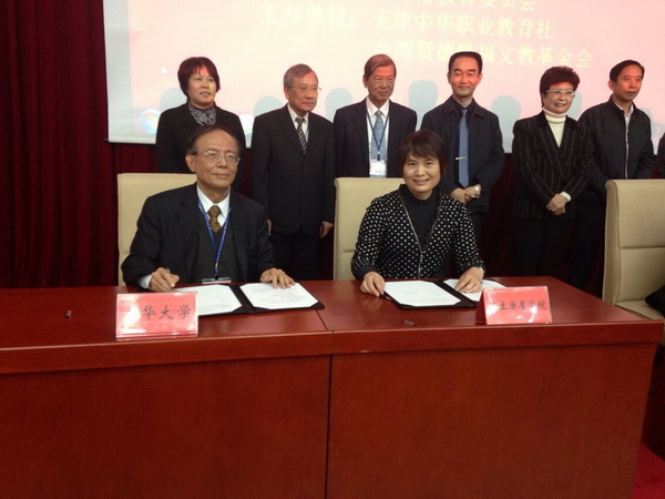 2014年10月28日,由天津市教育委员会、中华职业教育社联合主办的津台两地职业教育研讨会在市教委召开,学院院长王钊、建筑艺术系主任井云、培训中心副主任赵晓环及相关教师参加了此次会议?;嵘希旖蛑耙荡笱?、天津中德职业技术学院分别介绍了天津高职教育的发展及现状;台湾南华大学、南台科技大学分别展示了台湾技术职业教育的情况?;嵋橹荚诖俳蛱际踔耙到逃纳疃群献?,共同发展,培养高技能人才,提高教育水平,实现互补双赢?;岷?,学院向各台湾高校赠送了学院简介及光盘,并在市教委的指导下与台湾南华大学、南台科技大学、明新科技大学、大叶大学、国立科技大学、正修科技大学、龙华科技大学、中国科技大学等11所大学就学术交流、师生互访、研修等达成合作意向并签订了合作意向书。(撰稿人:社会培训部蒙晓晖)编辑:孙婧 审核:高义镇