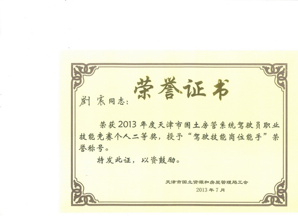 6月22日,办公室刘震同志代表学院参加市国土房管局举办的“天津市房管系统驾驶员职业技能竞赛”活动。比赛分为初赛、复赛、决赛3个环节,总共200多人参赛。刘震同志最终凭借自己扎实的专业知识和技能,取得优异成绩,荣获2013年度天津市房管系统驾驶员职业技能竞赛个人二等奖,并被授予“驾驶技能岗位能手”荣誉称号,为学院争得了荣誉。(撰稿人:办公室郭文婷)审核:高义镇