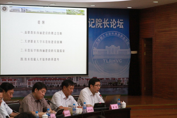 7月15日上午,论坛开幕式在学院隆重举行。中国建设教育协会理事长李竹成,天津市国土资源和房屋管理局副局长路红,住房和城乡建设部人事教育司何志方处长,中国建设教育协会秘书长徐家华出席,全体代表参加了开幕式。开幕式由学院党委书记黄克敬主持,王钊院长代表学院致欢迎辞。天津市国土资源和房屋管理局副局长路红,中国建设教育协会理事长李竹成,住房和城乡建设部人事教育司处长何志方分别作重要讲话。开幕式后,天津职业大学董刚校长作了题为“高职教育内涵建设与再思考—以天津职业大学为例”专题讲座。