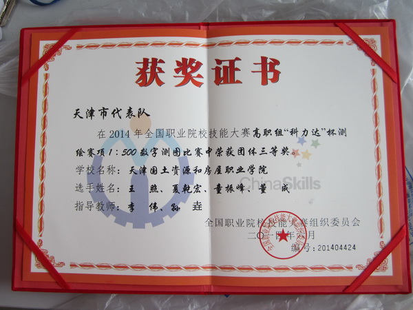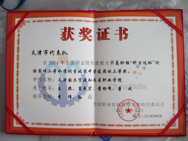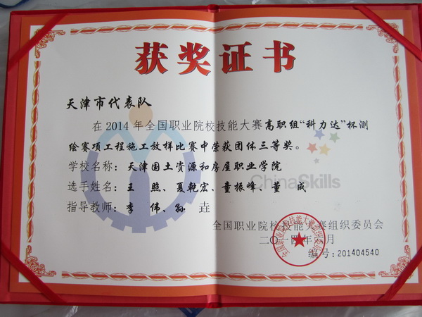 6月16日至20日,2014年全国职业院校技能大赛测绘赛项在黄河水利职业学院举办,共有来自全国29个省、市、自治区的52支代表队参赛。由我院建筑工程系工程测量专业学生董成、夏乾宏、王照、童振峰组成的天津代表队在此次全国高职组测绘测量赛项中喜获佳绩。