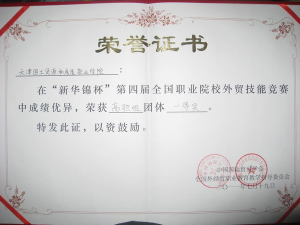 7月16日至20日,中国国际贸易学会、全国外经贸职业教育教学指导委员会共同举办了“新华锦杯”第四届全国职业院校学生外贸技能竞赛,我院代表队以优异成绩再次荣获高职组团体一等奖。此次竞赛,共有全国106所院校参赛,参赛选手较历届最多,比赛规则有较大变化,竞技难度明显加大。在外贸单证竞赛中,经过激励角逐, 2009级国际商务专业葛偏偏同学获一等奖,2010级国际商务专业贾倩同学获三等奖;商务英语口语竞赛中,2009级商务英语专业马雁铭同学获二等奖。在准备期间,我院领导高度重视并给予了大力支持,国贸系指导教师和3名参赛学生经过近一个月的艰苦奋战、精心准备,取得了好的成绩,我院学生的表现,受到与会专家领导的高度肯定,为学院争得了荣誉。