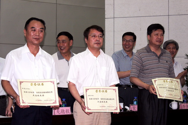 会议由天津中华职业教育社主任欧成中主持,评审专家委员会副主任董刚宣读评审报告,天津市职业教育与成人教育学会副会长岳腾仑宣布表彰决定,市教委副主任吕景泉、天津市职业教育与成人教育学会会长龙德毅出席会议并讲话。会上,7个优秀学校奖、7个杰出校长奖、15个杰出教师奖和3个优秀理论研究奖的代表和个人受到表彰,我院王钊院长获“杰出校长奖”接受了颁奖。院长助理、办公室主任李贵森,办公室许智勇代表学院参加会议。